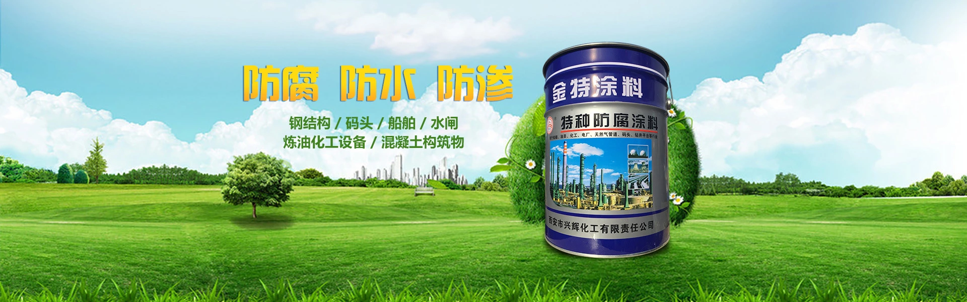 西安興輝化工有限公司,始建于2008年,廠址位于風(fēng)景秀麗、交通便利的西安灃京工業(yè)園。優(yōu)越的地理位置和交通,奠定了興輝化工公司強(qiáng)勢(shì)發(fā)展的基礎(chǔ),使“金特” 涂料更快捷的送到您的手中。公司精良的制漆設(shè)備造就了金特涂料的堅(jiān)實(shí)基礎(chǔ)。公司生產(chǎn)研發(fā)銷售的環(huán)氧類防腐涂料、氯化橡膠類防腐涂料、聚氨酯類防腐涂料、丙烯酸系列防腐涂料、IPN8710互穿網(wǎng)絡(luò)系列防腐涂料、導(dǎo)靜電防腐涂料、有機(jī)硅耐高溫防腐涂料、氟碳漆、各色醇酸、硝基系列涂料等近百個(gè)種類。公司產(chǎn)品廣泛應(yīng)用手自來水、污水處理、天然氣管道等市政工程及發(fā)電廠、化工廠的機(jī)城設(shè)備、油田、貯罐、碼頭、船舶、管道設(shè)計(jì)等防腐。公司... 【查看詳細(xì) >>】